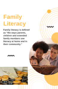 Family literacy is defined as the ways parents, children and extended family members use literacy at home and in their community.